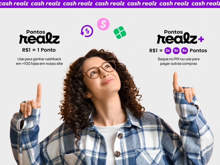 A cada compra em lojas participantes, você acumula Pontos Realz+ que podem ser